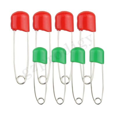 os pinos plásticos da cabeça da segurança do bebê são feitos do aço carbono, que cria os pinos inoxidáveis e resistentes para manter confortavelmente o tecido no bebê. Para a segurança do bebê, os pinos são feitos com fechamentos de travamento plásticos.